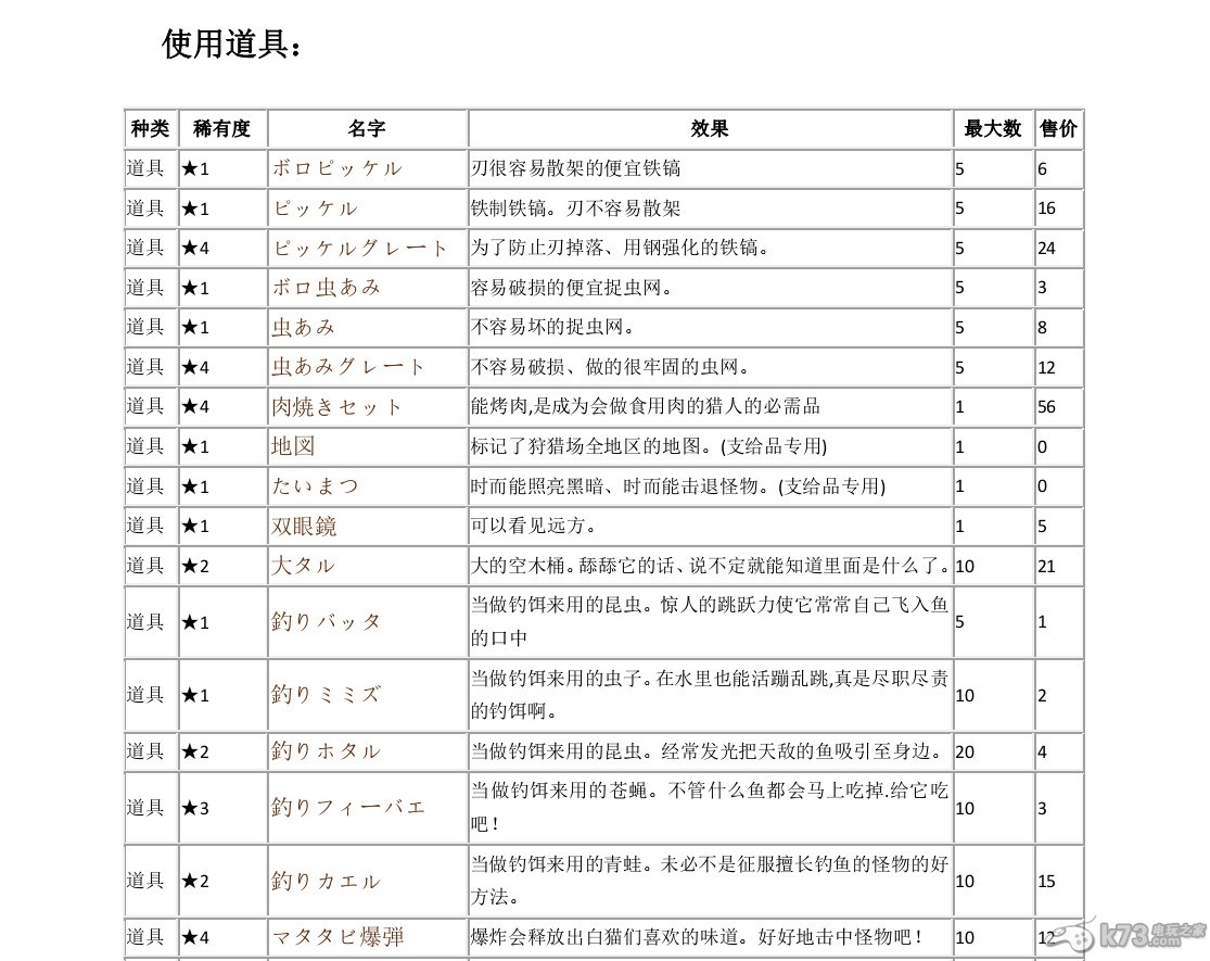 怪物猎人3G全道具中文效果pdf表下载(手机可用) |