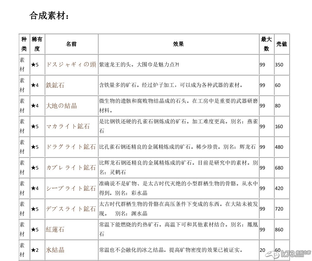 相信很多日文苦手玩家表示对于《怪物猎人3G》中的道具效果及素材名称,合成所需要素材等非常的头大吧!首先不知道道具的效果让自己在合成武器或者装备时不知道从何下手,又怕担心辛苦合出来的道具和装备却是渣渣,为了方便各位童鞋制作装备和防具等,下面就给
