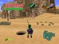| 童年时,城堡护城河边有棵树,在树下吹奏暴风雨之歌(Song of Storms)。 | 黄金蜘蛛(Gold Skulltula),蜘蛛(Skullwalltula),流言石。(洞内有墙壁,需要用炸弹炸开) | ![]() |