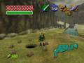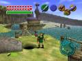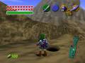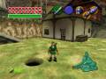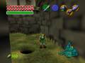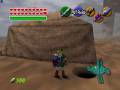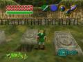 | 向后拉湖中小岛上的墓碑。 | 三个德库商人,右边的卖Bombs(5个40卢比),中间的卖Arrows(30个70卢比),左边的卖Deku Nuts(5个20卢比)。 | ![]() |