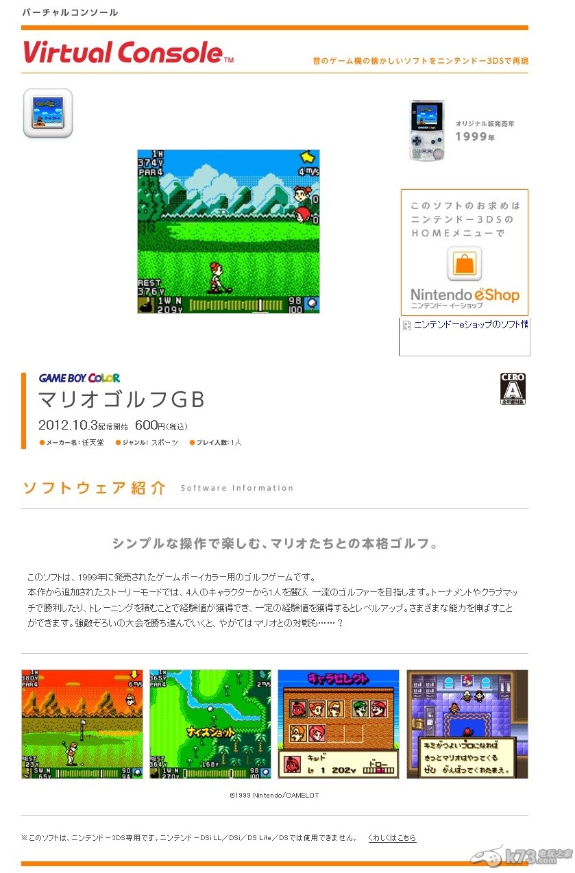 日前,又有一款新的虚拟游戏宣布将会登录日本eshop商店了,它就是GBC平台上经典的休闲体育游戏《马里奥高尔夫》。