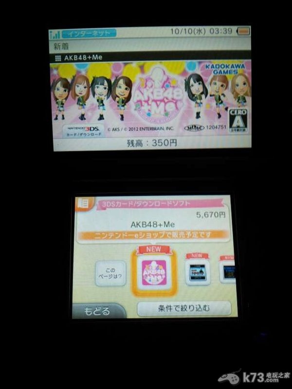 关注任天堂日本eshop的同学可能已经注意到了,3ds的虚拟偶像游戏《AKB48和我》官方将这款游戏搬上任天堂的eshop商店,而游戏将支持下载版!