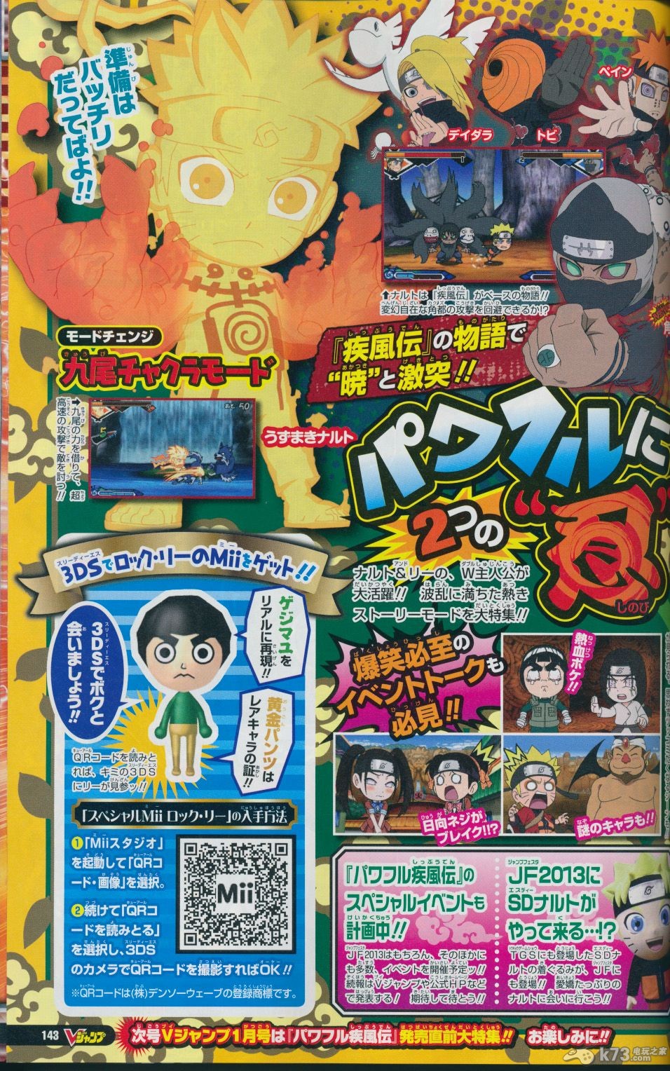 本周的少年Vjump上公布了3ds平台动作游戏《火影忍者 SD疾风传》的杂志图,本次的杂志图公布了游戏的新模式、新战斗系统,以下是杂志图详情。