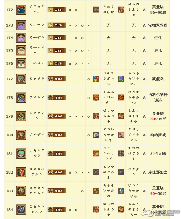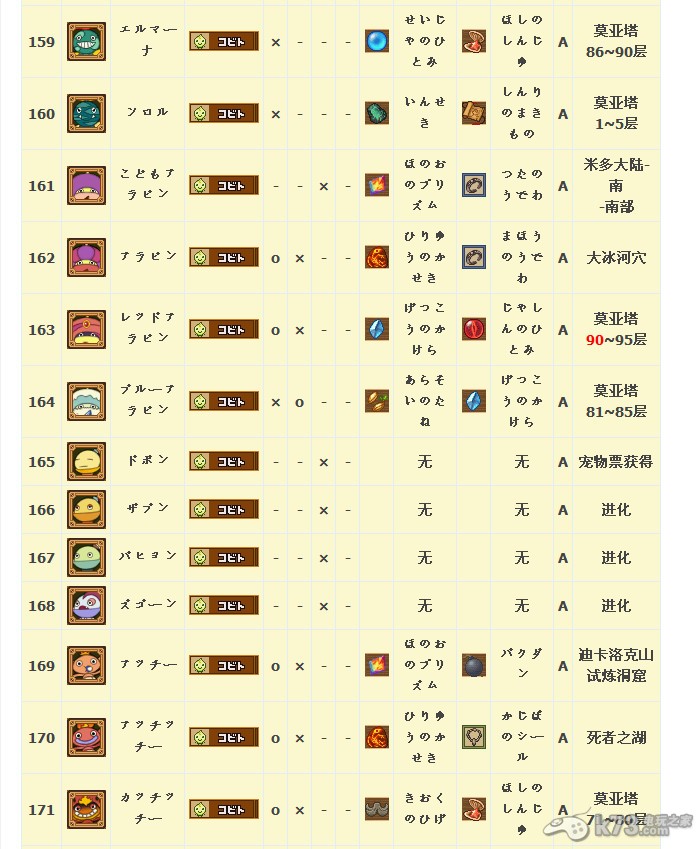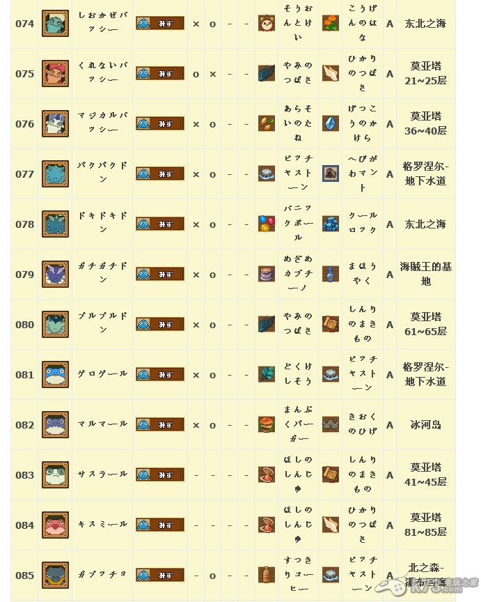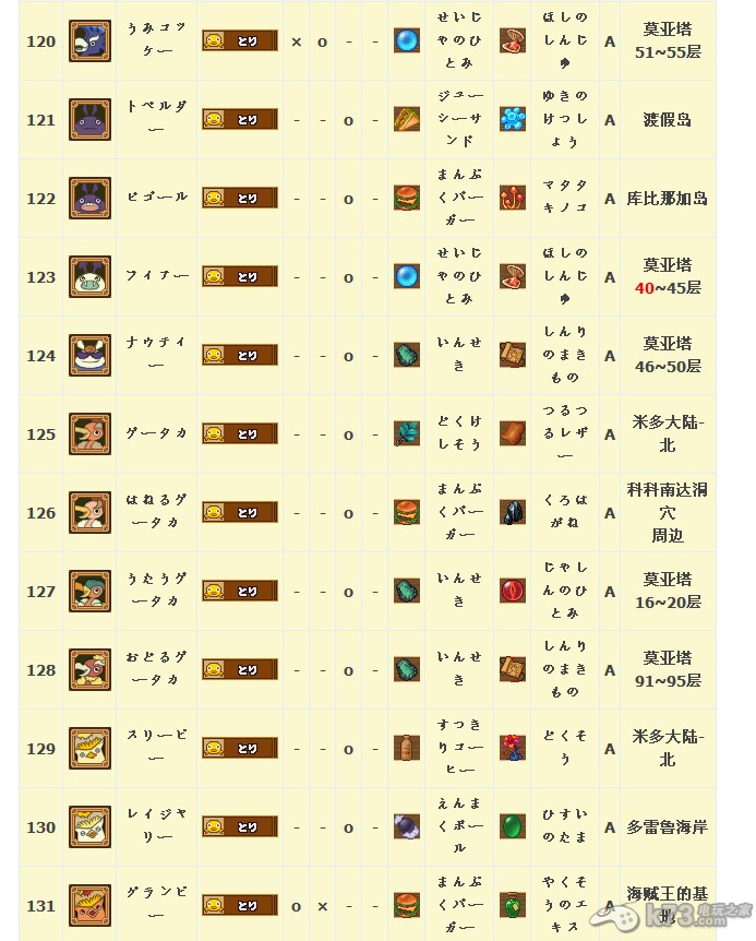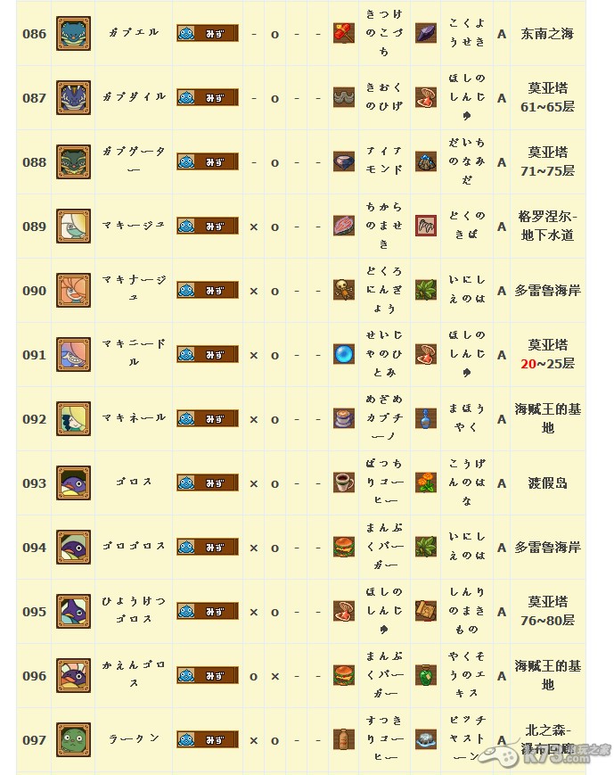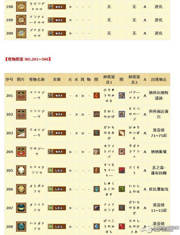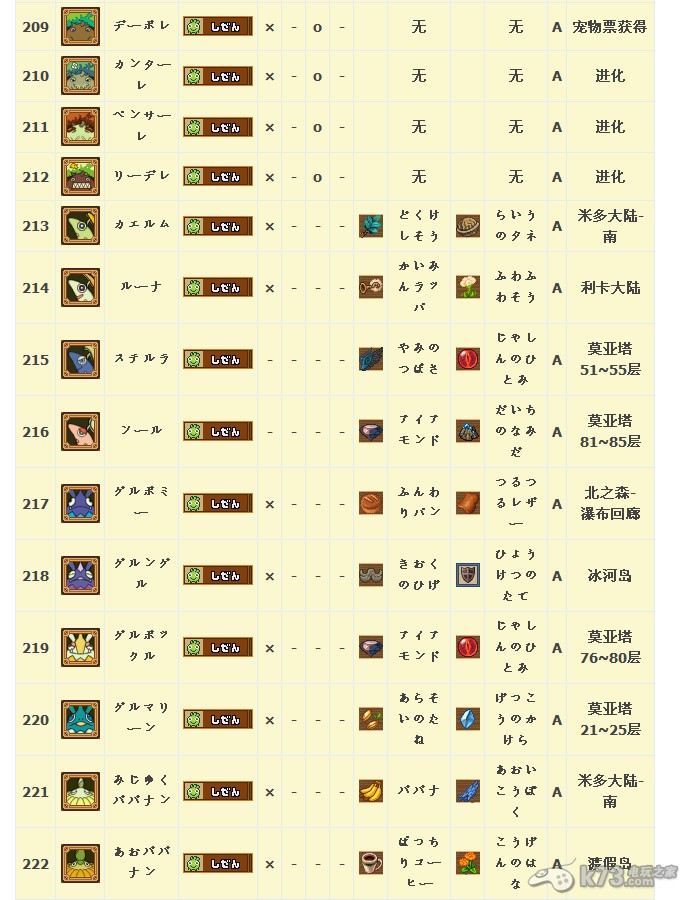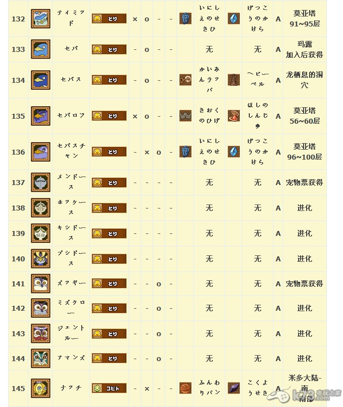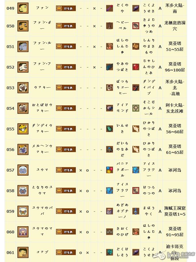 怪物图鉴&出现地点及掉落素材: