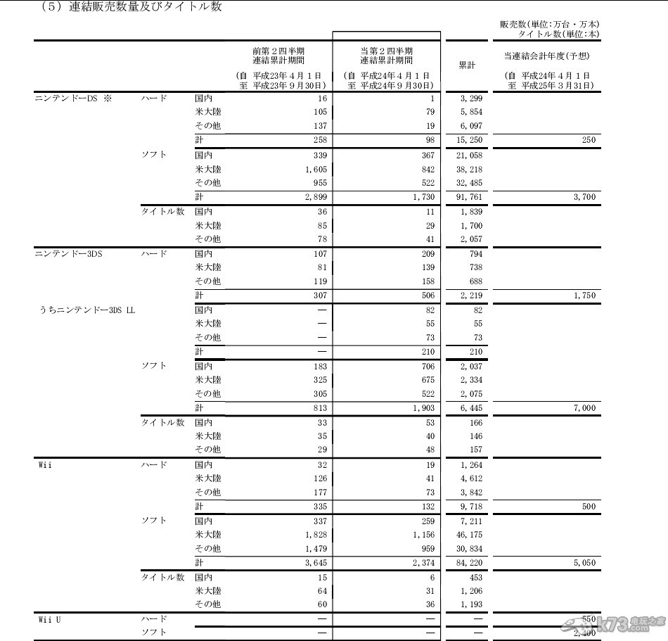 NDS销量达到了1.525亿;3DS硬件达到了2209万台,其中3DSLL210万台;Wii主机达到9718万台,而WiiU财年预计为550万台;
