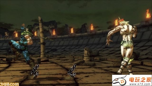 今天,NBGI其预定发售于PS3/XBOX360平台的格斗新作《JOJO奇妙冒险全明星大乱斗》的新的截图,本次的截图为角色对战截图及一些相关的原画。