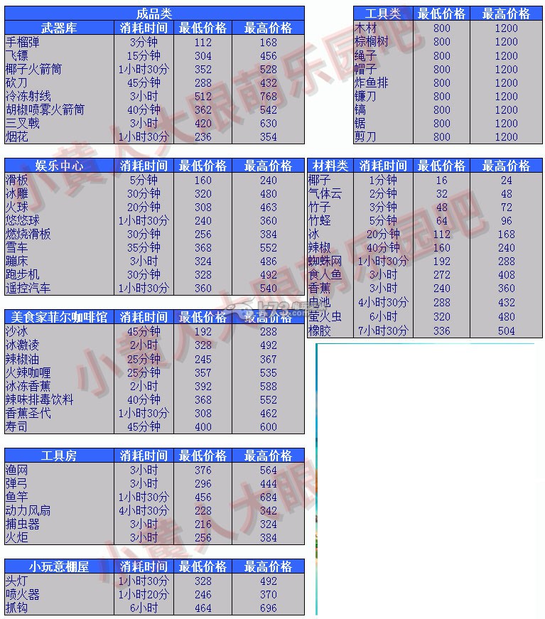 小黄人大眼萌乐园全物品价格表一览 图片浏览