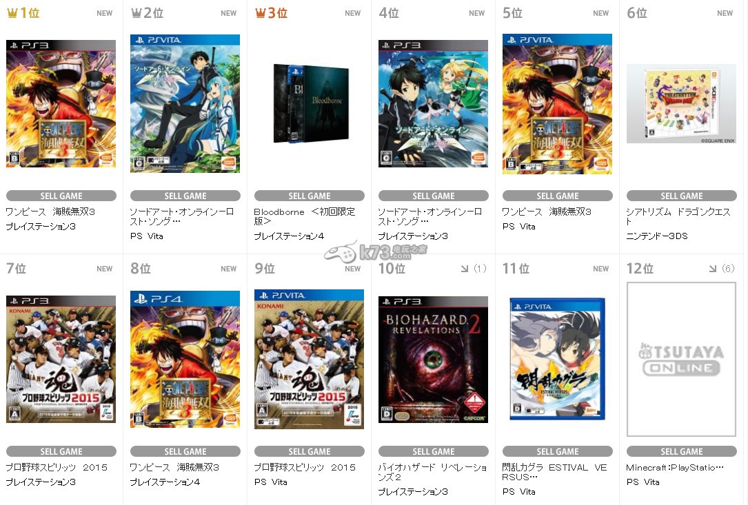 Tsutaya销量榜:《海贼无双3》榜首 PS系游戏刷屏 图片浏览