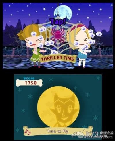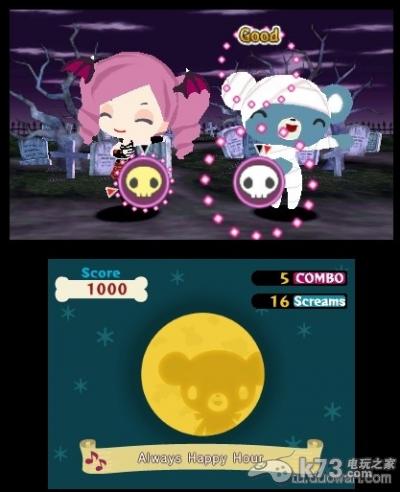 本作是一款音乐题材的游戏,游戏中玩家需要扮演可爱的女主人公卡布瑞在鬼怪镇寻找帮助,以使自己能够灵魂归位。而游戏的玩法即需要玩家在适当的时机按下相应的按键或触摸屏幕、或画圈。另外,上屏中并不是卡布瑞一个人在跳舞,鬼怪镇可爱的鬼怪们也会与卡布瑞一起跳舞,各种可爱的鬼怪们在一起相当的可爱,玩家还可以对卡布瑞进行换装,女孩子们绝对不要错过这款游戏。
