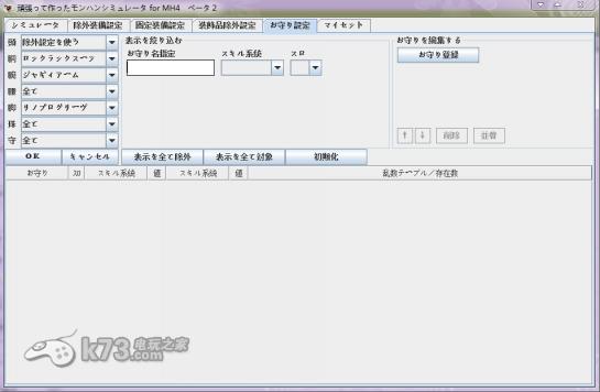 此软件为3ds动作游戏《怪物猎人4》专用的配装器,你可以对游戏中的发动技能对应的防具组合,通过技能模拟、技能搜索等便捷的功能快速进行定位,找到想要的搜索结果。