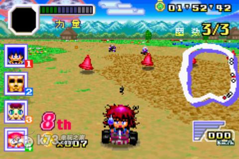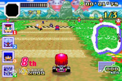 本作是Konami在gba平台上发行一款以旗下众多游戏品牌中知名的游戏明星为题材的卡丁车类型的竞速游戏,游戏的玩法与任天堂的《马里奥赛车》系列类似,玩家可以控制可爱的角色们来到游戏世界中进行同台竞速,你可以捡到道具用来陷害对方,阻挡你前面的玩家。游戏非常欢乐,支持多人联机游戏,是款不错的休闲游戏。