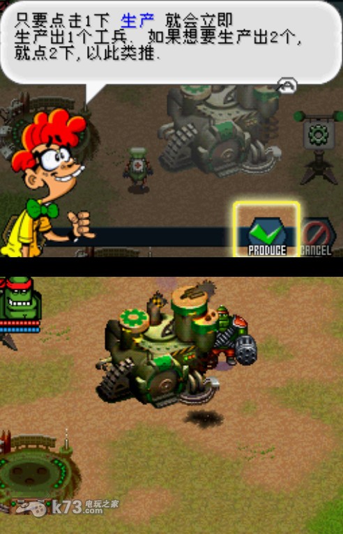 本作是一款nds平台上难得一见的即时战略类游戏,游戏的玩法类似于《红色警戒》,玩家需要在基地内建筑各种设施生产兵种来攻克敌人,利用nds的下屏使得游戏的操作相当的舒服。