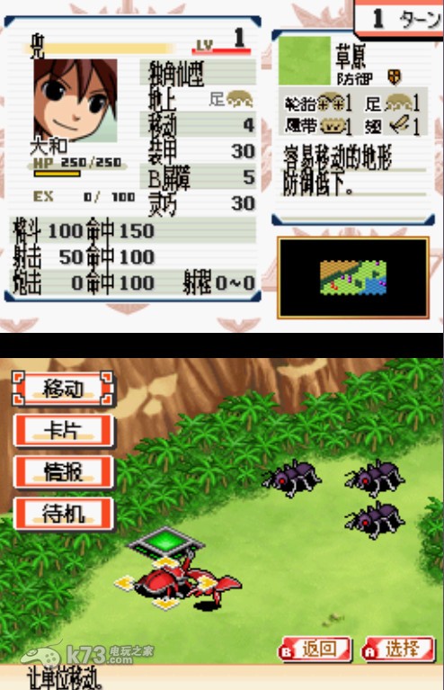 本作是在nds平台上发行一款策略类游戏,游戏中玩家需要扮演一名能够听到昆虫说话的小男孩前去昆虫世界拯救那里的危机。游戏的玩法是个标准的策略类游戏,可以装备“格斗”、“射击”、“炮击”三种装备,喜欢这一类型游戏的玩家不要错过这款作品哟!