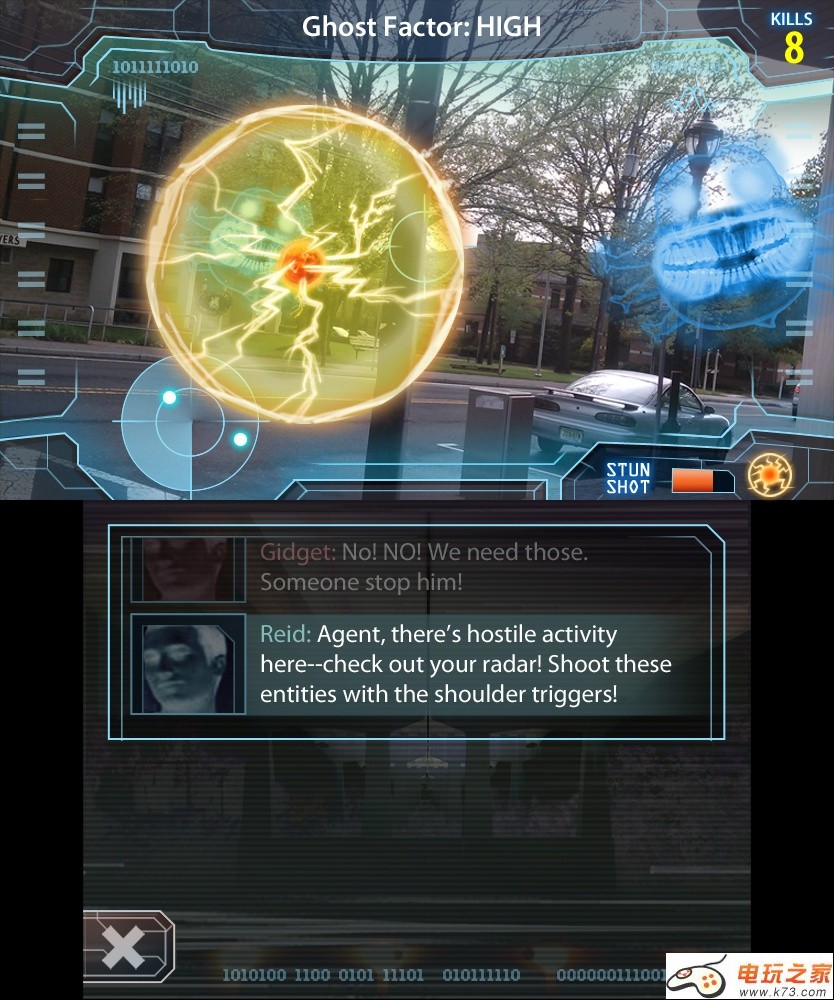 本作是3DS早期比较常见的一种利用3ds陀螺仪功能进行游戏的游戏,而游戏的类型为一款捉鬼题材的新作。游戏中有个需要通过3DS摄像头的系统,玩家要通过3DS的两个外置摄像头去找出真实环境中隐藏着的“鬼”。操作者需要手持3DS在自己所处的环境中到处搜索,发现并调查看到的超自然现象。有的鬼魂拥有瞬移和攻击技能,玩家则要和捉鬼小队的成员进行合作,然后对鬼进行追踪、捕捉、射击和消灭。并且游戏还将支持擦身通信联机功能,玩家携带3DS外出的话还能解锁更多的鬼。本作充分利用现实中的场景,让玩家有十足的临场感!