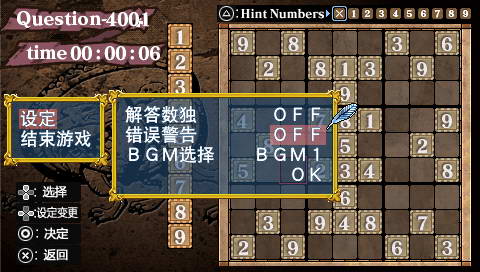 《数独1000问》是经典数字类游戏数独系列登陆psp平台的最新作,游戏虽然玩法和画面简单,但是耐玩度却极高,也要求玩家需要完全投入身心于游戏中,利用自己的聪明才智通过关卡。