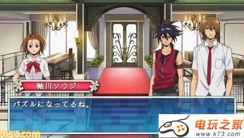 PSP新作《神之谜题》是改编自同名动画作品的游戏,由ARC SYSTEM WORKS负责制作,游戏将以AVG的形式展开原作中主人公大门界人的各种解谜冒险。除了原作故事中的有趣谜题之外,游戏中还会收录更多动画中没有出现过 的谜题,是一款纯粹集合了冒险和解谜的游戏作品。