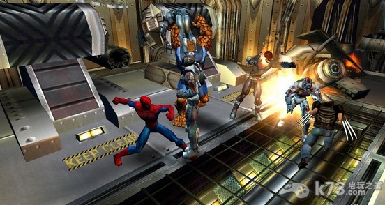 同时游戏中还集合了多种抓、防、摔等技能来丰富游戏的ACT战斗系统,环境的互动性也在游戏中也有所体现,玩家控制的超级英雄能够利用场景中的一些物品来充当自己的单手或者是双手武器。每一位超级英雄还有自己的专有技能,通过气槽的畜满来发动。