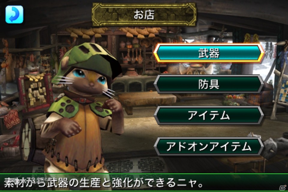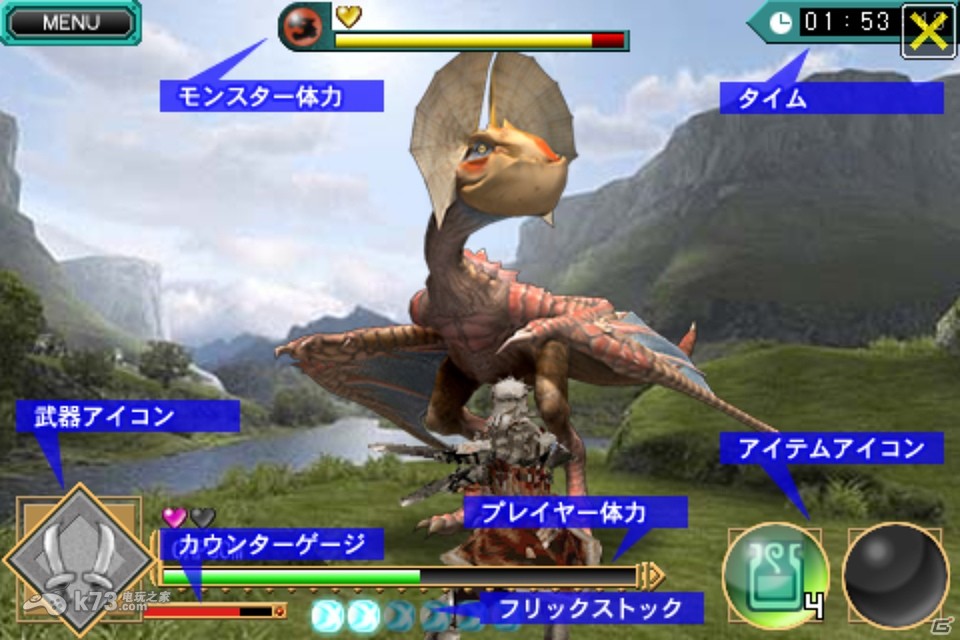 本作是怪物猎人在iOS平台上推出一款外传作品,游戏针对iOS的触屏操作进行了优化。同时游戏还支持使用蓝牙最大2人联机,游戏加入了必杀技的设定,当必杀槽满后就可以一键使用必杀,非常的便捷。游戏依然保留了系列传统的风格,游戏中玩家狩猎大型怪物,从而获得生产强力装备所必须的素材和材料,向更加充满难度的新怪物挑战。