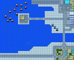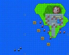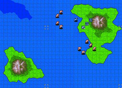 攻略要点: 第一次打这一关的时候很多老玩家都会有似曾相识的感觉吧。同样是DC的重要基地,同样是大量的炮塔防守,嘿嘿……在突破了DC的防线核潜艇和大型导弹便会在ウェーク岛的左边出,这时主舰正式启动发动攻击,不要忘了把它调到前线来。下一回合安藤正树出现,在消灭了岛上的所有炮塔后跑进基地去了……这时候敌军也应该没剩多少了,全军突击吧。 |