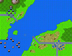 攻略要点: 在开始的时候最好给隆圣的TT装上海中适应性为A的强化道具。开场4回合内先快速的消灭那9架战斗机,然后天山便会带着增援部队出现在地图的偏近与右边下方陆地上。他所驾驶的AM并不厉害,隆圣和莱一起上就能很快干掉他。要注意的是最好分点部队去对付那两艘核潜艇,要是他们跑的太远的话就用小飞机堵路的绝招吧。啊哈哈哈哈哈,那两艘破潜艇是逃不我们的掌心的。 |