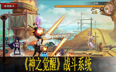 此款游戏的战斗界面,玩家的角色和助战会自动和敌方交手。玩家需要做的,就是在适当的时候施放合适的技能,来达到摧毁敌方和恢复己方体力的效果。