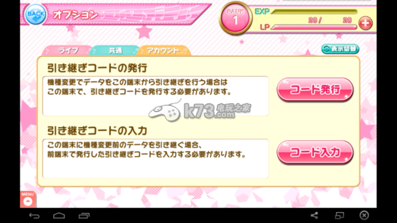 然后点到共通隔壁的アカウント账户,就能找到引继码的发行与输入了