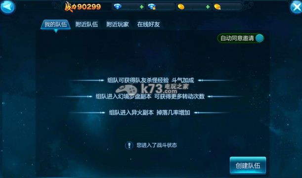 这个时候主线任务做完了,每天两次的运镖也做完了,你还没有到39级的话,使用背包里赠送的经验符,喊上好友组队一起去刷怪,组队是可以获得额外的经验和斗气的。