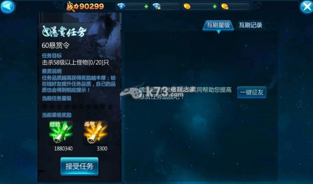 完成“幻境罗盘”副本,可以接受另外一个获取大量经验的日常任务:“悬赏任务”,这里会根据当前等级匹配出任务需求。