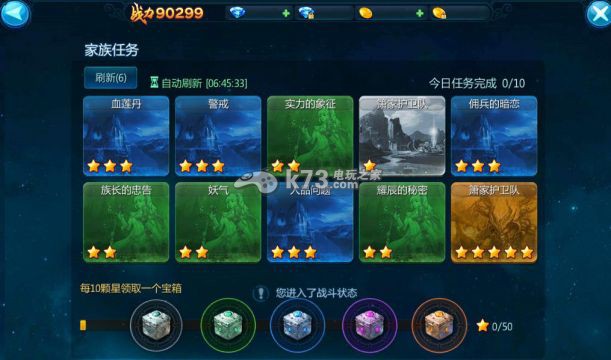 建议只接5星任务,可以获得更多的经验,最后还能领取到50星的宝箱。