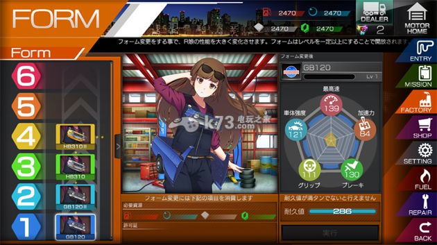 对等级提昇后的 R 娘投入新零件,让她切换形态!