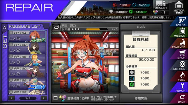 赛车当中总有许多意外。为了让 R 娘在发生事故时不会变成废铁,平常就要好好「维修」!