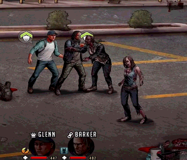 最后一波人类会出现Boss,每场战斗结束后都会有幸存者加盟游戏一开始正是发生在第四季大结局中的监狱围攻战,总督正开着坦克带着伍德伯尼的幸存者们向Rick寻仇。然而话锋一转,镜头迅速跳转到了伍德伯尼建设的早期,此时独手猛男Moore尚未加盟,而Rick团队还在农场唠嗑(不过我们仍可以将Rick、刀女、棒子男、手枪女等角色招募到队伍中来)。玩家要做的就是指挥总督麾下的战斗小分队抵挡尸群的进犯,从其他人类生存者手中争夺资源。