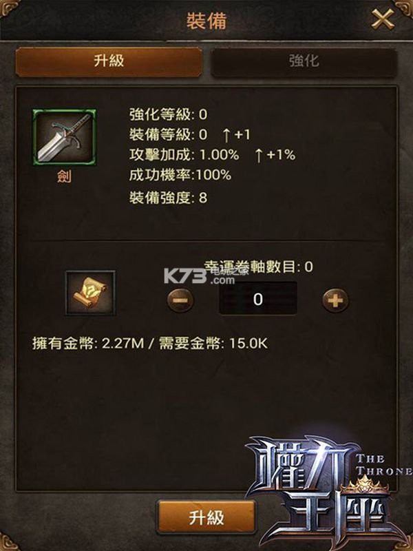 另外,除了科技可以让部队战力有所提升外,当我们可以盖出「铁匠舖」时,我们便可以透过「精英挑战」来取得各部队的指定装备。装备也不是说拿到、穿上就没事了,我们还得要帮装备升级、强化,让它的战力能发挥到最大。升级很简单,只要有金币就行了,但强化就比较麻烦,还需要强化卷轴、魔化矿石…等道具,基本上我们先以升级为主就行了。
