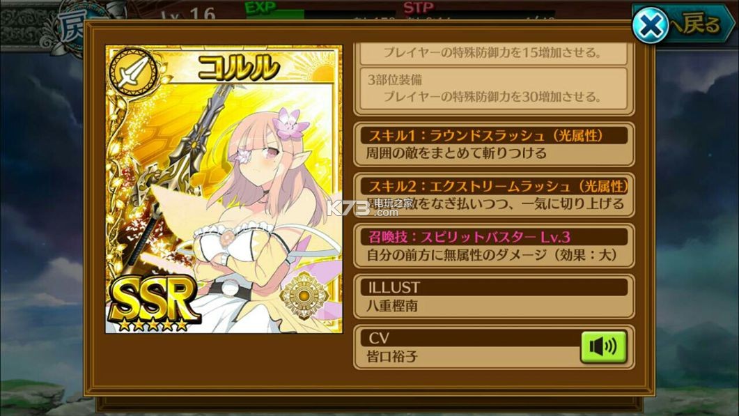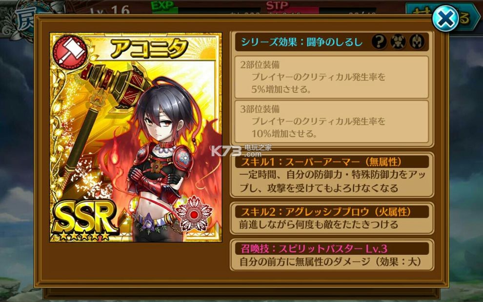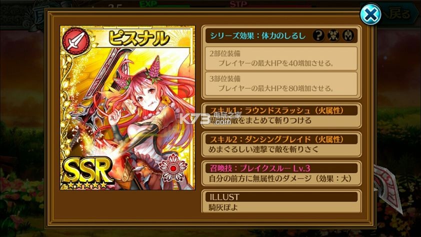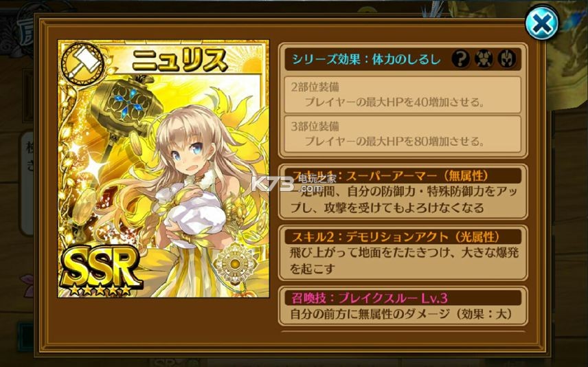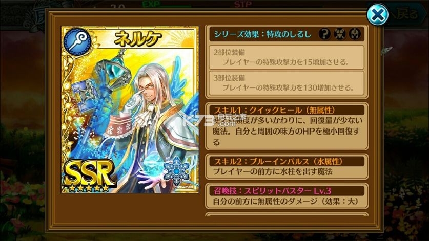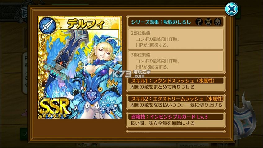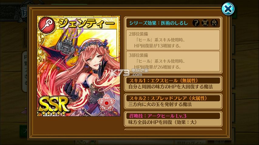 | 召唤技 | 我方全员HP回復500 Lv3 | |||