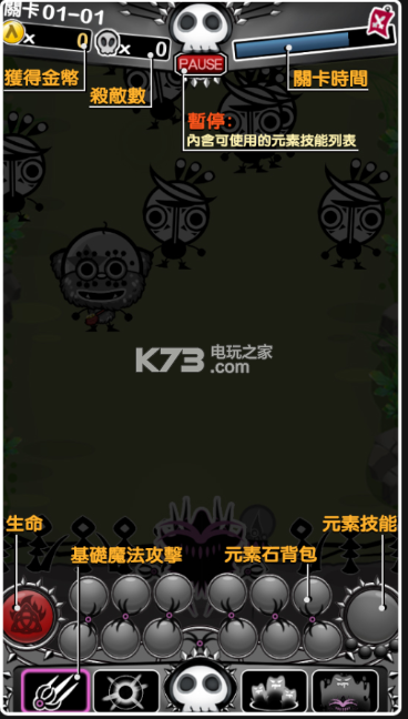 游戏的乐趣的就是在第三种,在副本里,各种杀死怪物收集元素石头,再把元素石头组合成魔法技能扔出去!