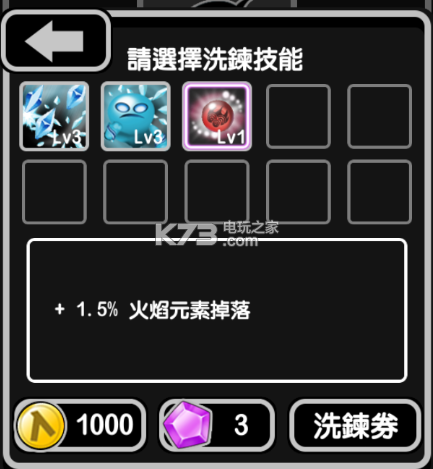 洗练可以通过金币进行,1000金币一次,可以指定重置一个使魔技能。