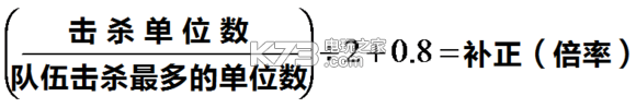 公式中【击杀单位数】即每名我方角色击杀的单位数,【队伍击杀最多的单位数】即所有上场角色(包括好友)中击杀最多的一名角色的击杀数。