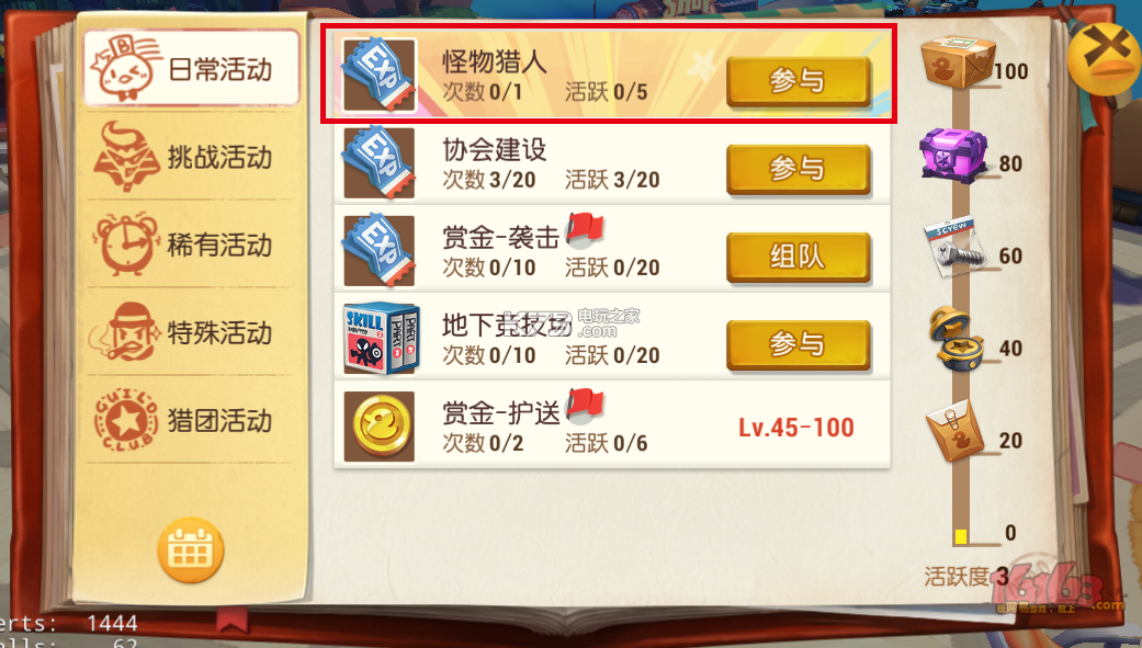 怪物猎人几乎是猎人们每天来到方舟上第一个接取的任务了,任务内容是让玩家杀一定数量的怪物。虽然提供的经验无法与协会建设等活动比拟,但无需专门完成、只需伴随其他活动一起完成的特点让其具有高的爆棚的性价比!不用多说,每日必做。