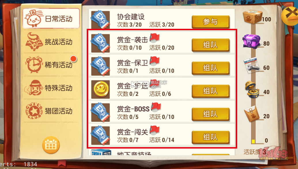 赏金活动的一大特点便是组队活动,所以各位猎人记得要组满4个人才出发。以上的特点使得赏金活动成为高效的、全民参与的经验获取途径,而且通过合理的团队配置,可以让做任务的效率不止提高一点点哦。另外,在组队的时候一不小心就认识了同队的妹子,也是这个活动的一大福利哦。
