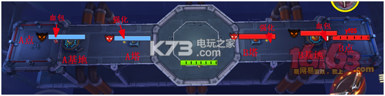 规则:4v4对战,死亡10秒后复活,以占领中央区域为胜利条件;当中央区域的己方人数占优时己方占领进度会涨,己方人数占优越多上涨越快。