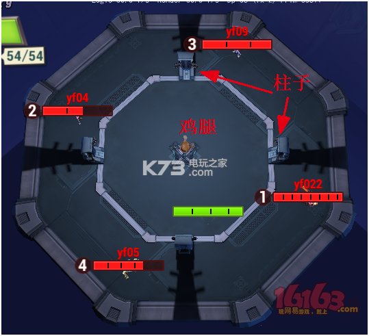 另外,注意到场地的四个方向实际上有四个柱子,可以用来躲避来自于大魔神或者其他猎人的子弹,治疗职业甚至可以用柱子来拖时间回复自身血量。