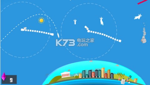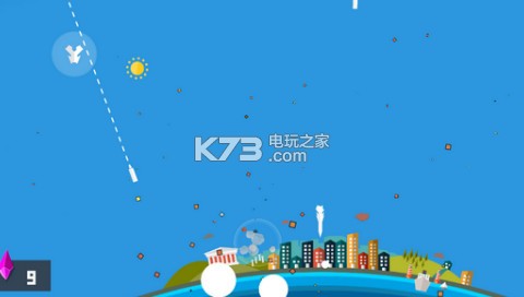 《划线保卫战》的画面非常简单,一个只露出 1/3 脸的地球,一座拥有地标建筑的城市,一幅能够区分出白天还是黑夜的天空背景,再外加一个始终躲在一旁打着酱油的太阳,这就组成了游戏的整个场景。至于音乐方面,似乎是想突出保卫地球的危机与使命感,游戏采用了节奏感极强的电子音乐,并且还会配合游戏中的道具而变奏,听起来非常带感。