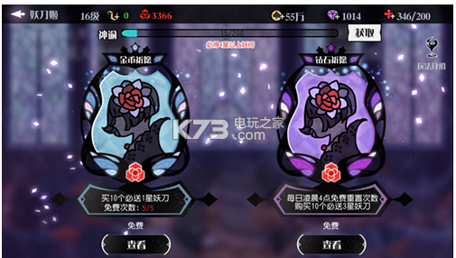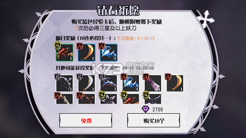 日常任务每天都清除,不仅有丰富资源,还有大量经验卡,可以加速妖刀升级。选择一些碎片比较容易拿的妖刀作为主打妖刀。