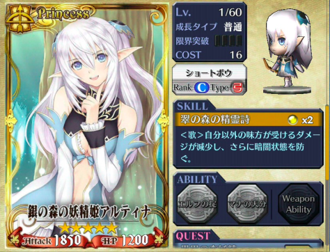 ABILITY:エルフの掟 HP剩下3分之2以上时,攻击力增加、所受伤害减少。