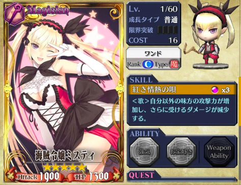 ABILITY:强気 HP剩下3分之2以上时,攻击力增加10%、所受伤害减少5%。