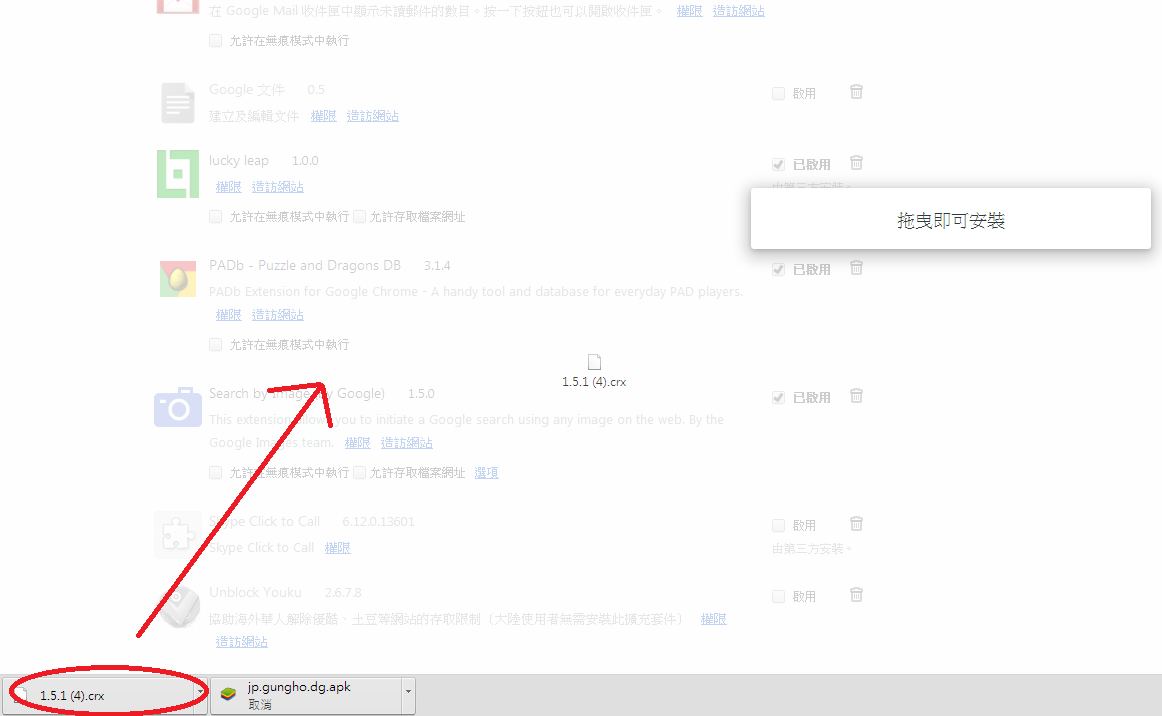 3.将档案拉入扩充页面