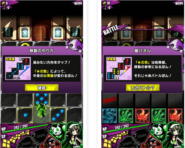 类似PAD般,兼具方块消除及队伍育成的RPG游戏。玩家需要组成一队独特队伍,于迷宫中移动,找出钥匙,开启大门,然后与Boss一决高下。迷宫中会有不同的敌人、宝物甚至陷阱,玩家每一步都是踏进未知的格子,极有探索冒险味道。由于每走一步都需要消耗玩家的SP,所以是直捣黄龙,开门打王,抑或是探索更多宝物就由玩家自己决定。