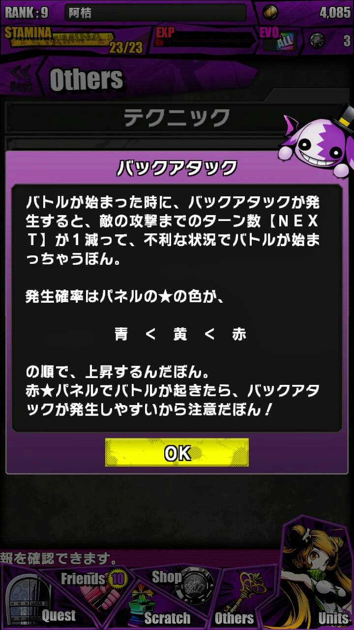 撇除先制及制于人的因素,玩家移动方块5秒后,不论成功发动组合与否,都算一回合。敌人生命上方「NEXT」旁的数字,就是显示它们距离下一次攻击的时间。如果是1的话,即敌人会于下回合攻击玩家。血量不足的话,便会Game Over。失去所有于此关中入手的金钱及魔物。