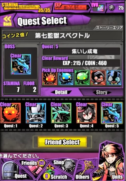关卡内分有不同数目小Quest,玩家选择后,上方自左由上至下起显示关卡资料: