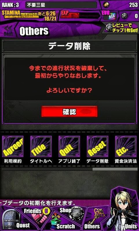 于游戏介面中,点Others→Reset ,重洗Data,可以节省重装Apps的时间。 游戏会把记忆洗掉,方便玩家重刷首抽,是很贴心的一个首抽系统,以下我们将和玩家们一起分享各大系统的详细资料。